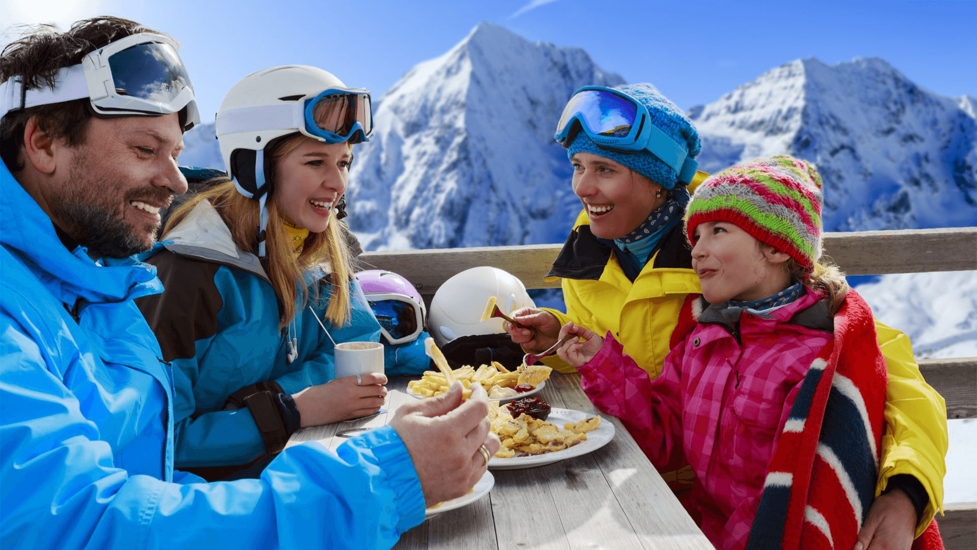 sciatori e pranzi in baita con vista